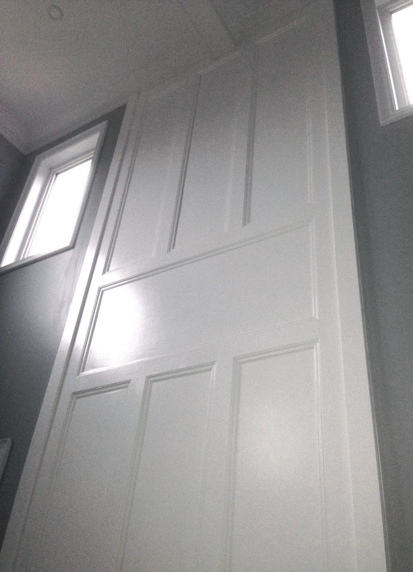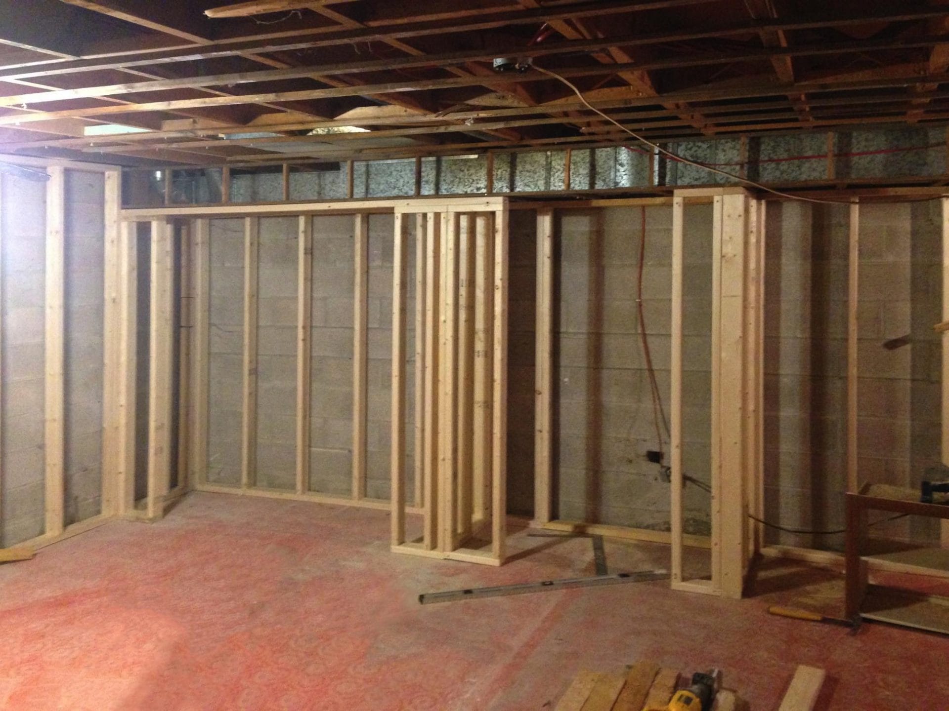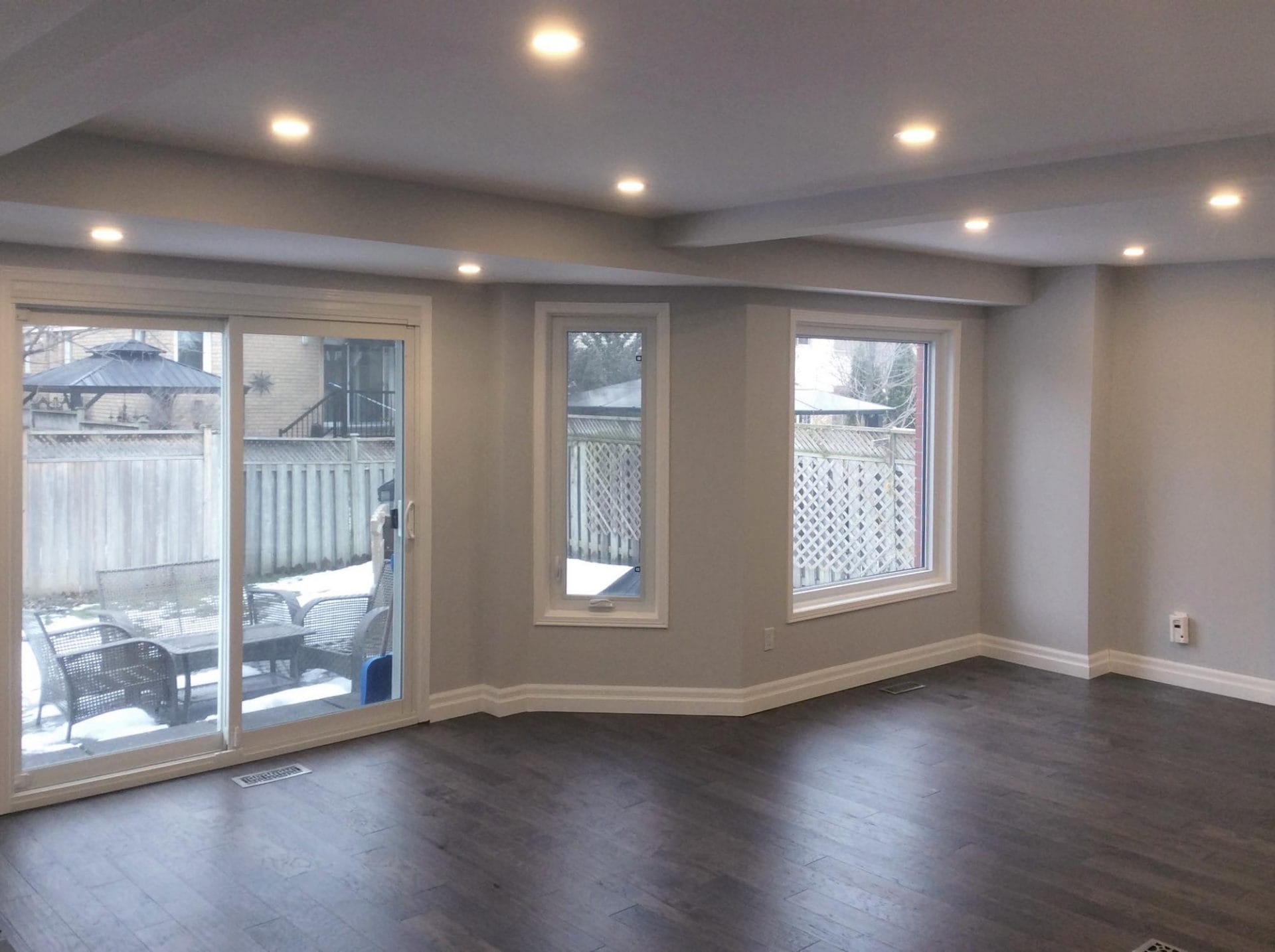 wall removal, new ceiling install with recessed lighting, new shaker style kitchen cabinets, quartz counter top, pendant lighting, maple flooring, dual step baseboards with matching shoe moulding,
