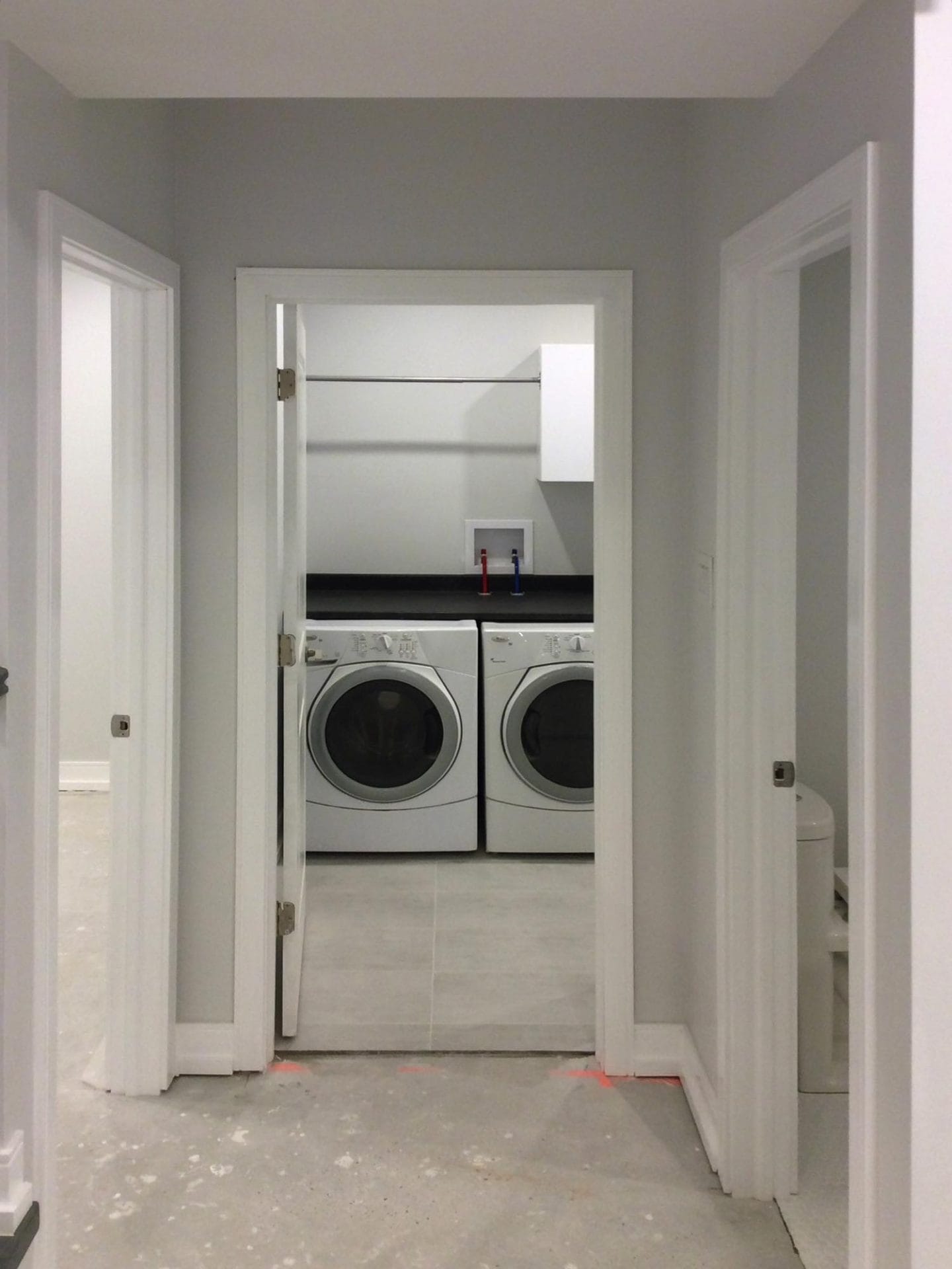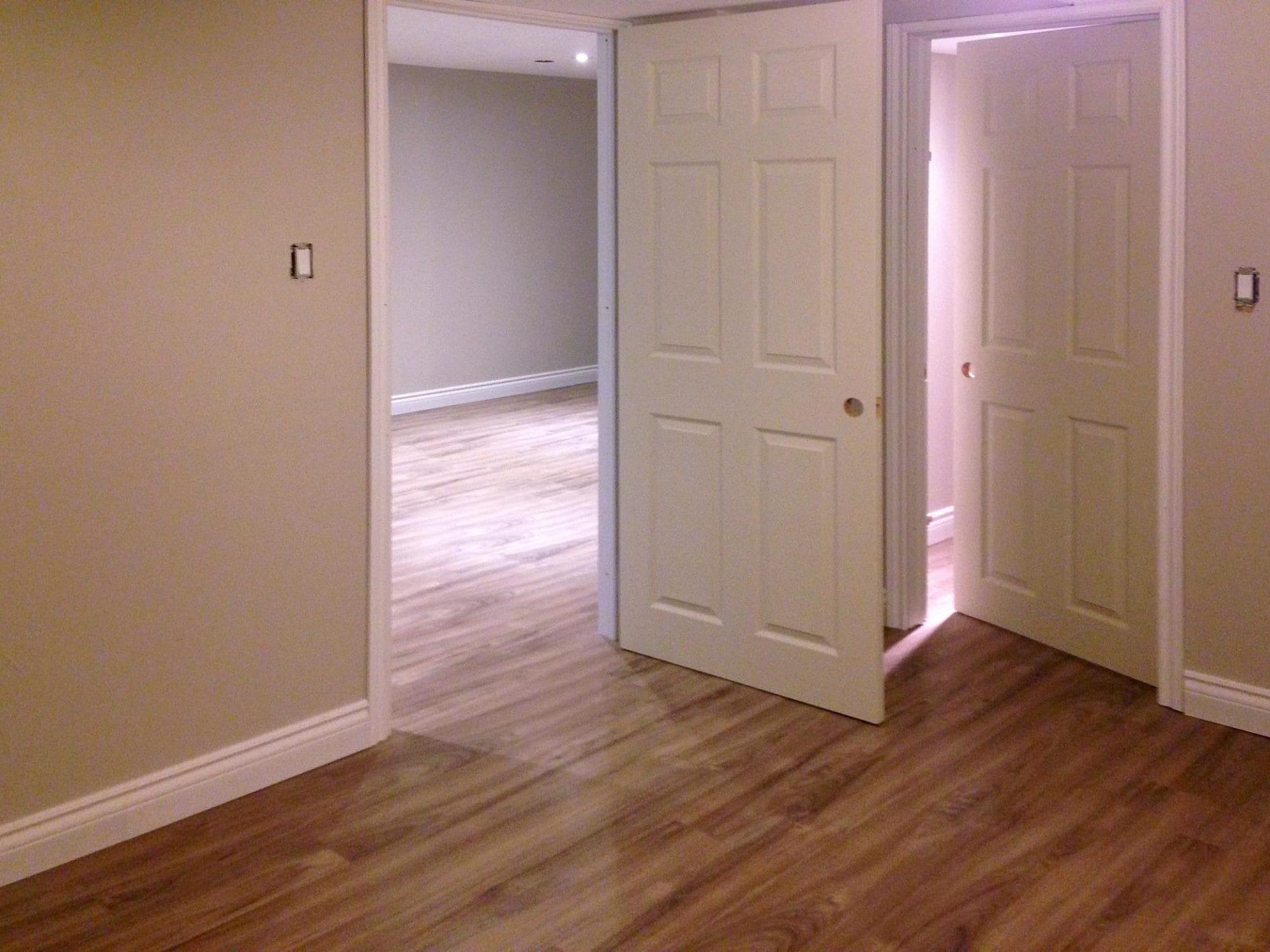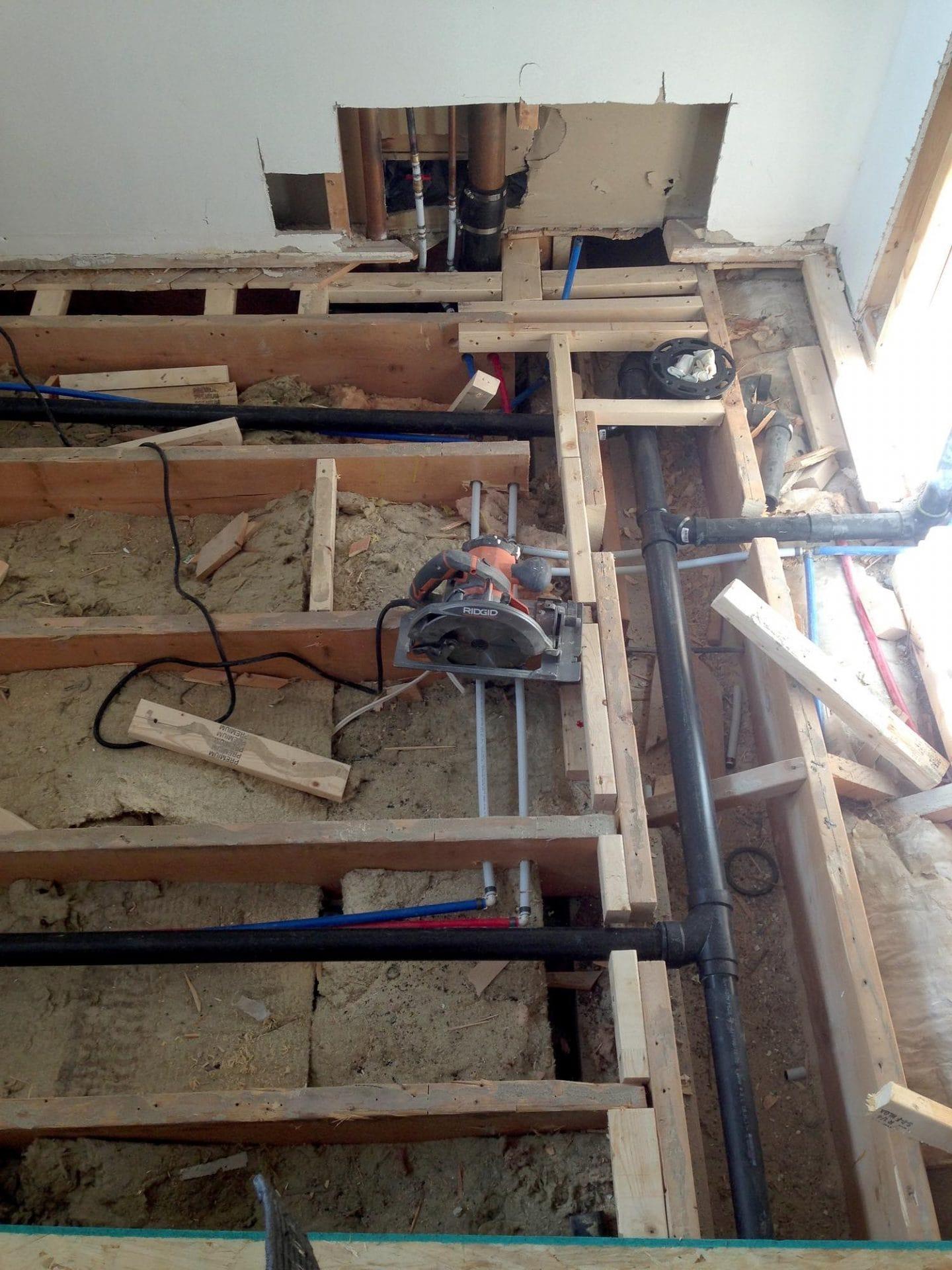 Full bedroom to master bath conversion , new drainage/venting and water supply lines, 24″ x 24″ porcelain Carrera marble tile, Bright white flat white porcelain wall tile with pebble stone accent strip, new dual flush toilet, solid wood 60″ double vanity with quarz countertop and single arm faucets, 60″ soaker tub and hardware