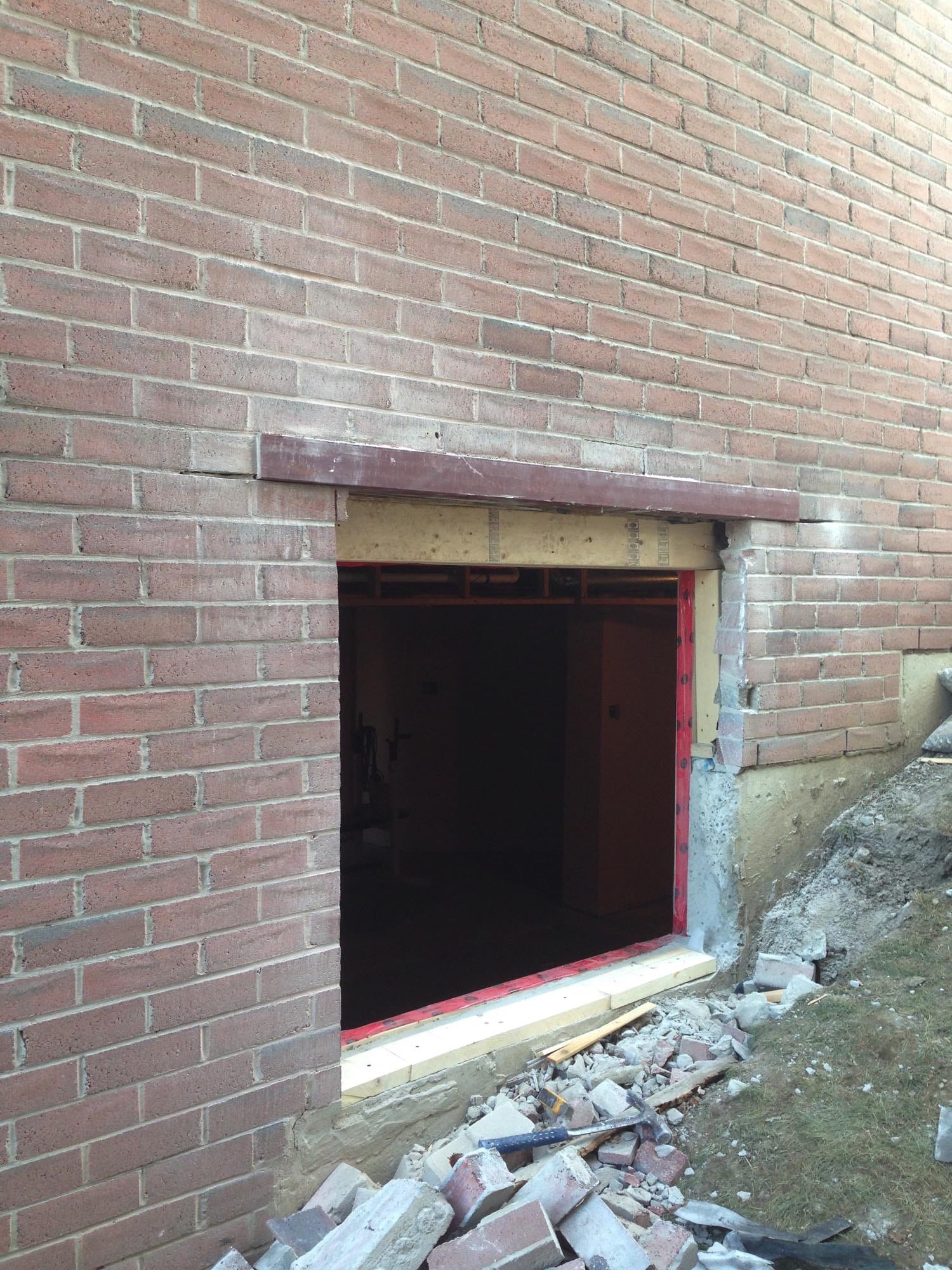 Basement apartment window widening masonry cut and lintel install