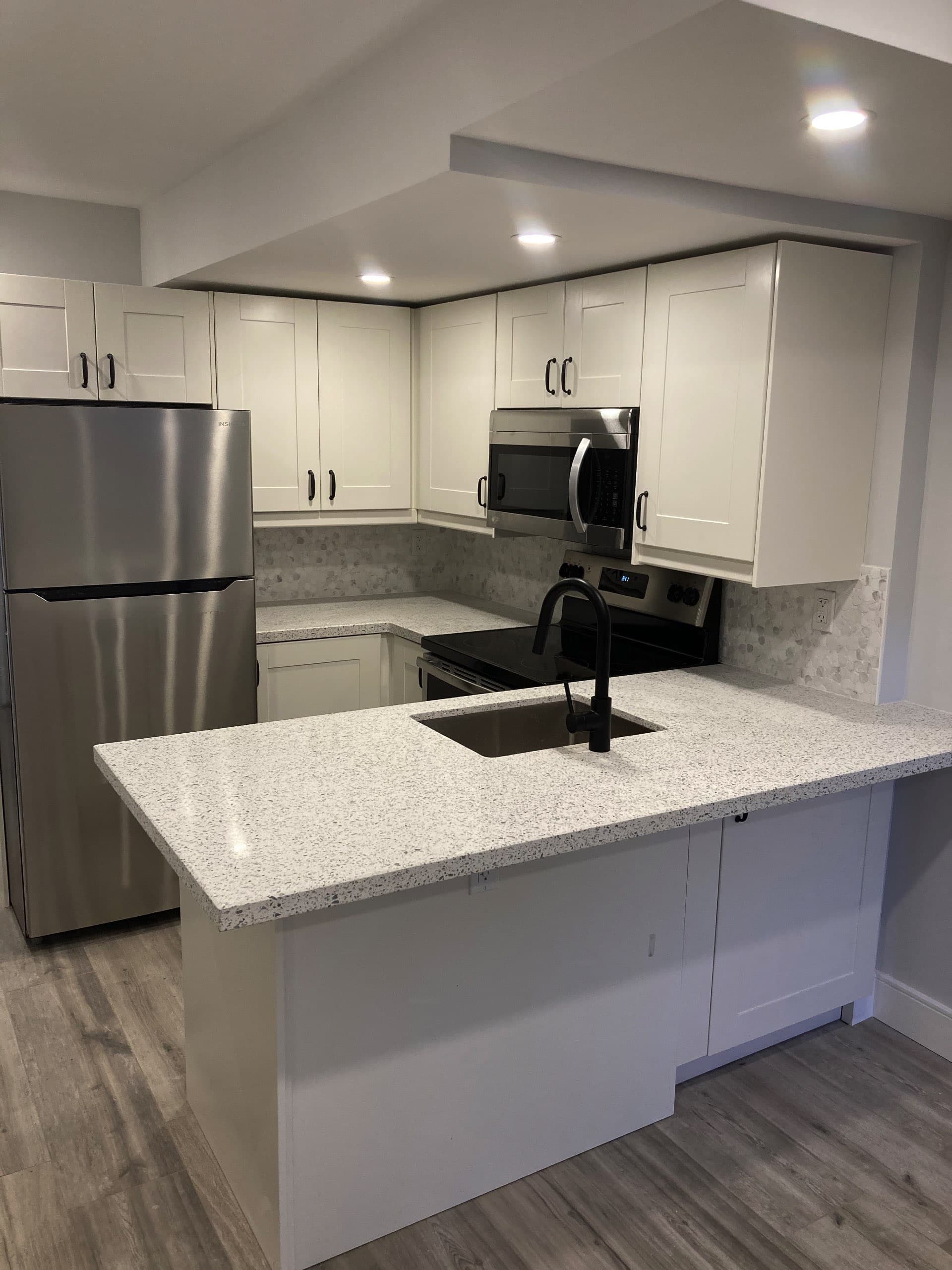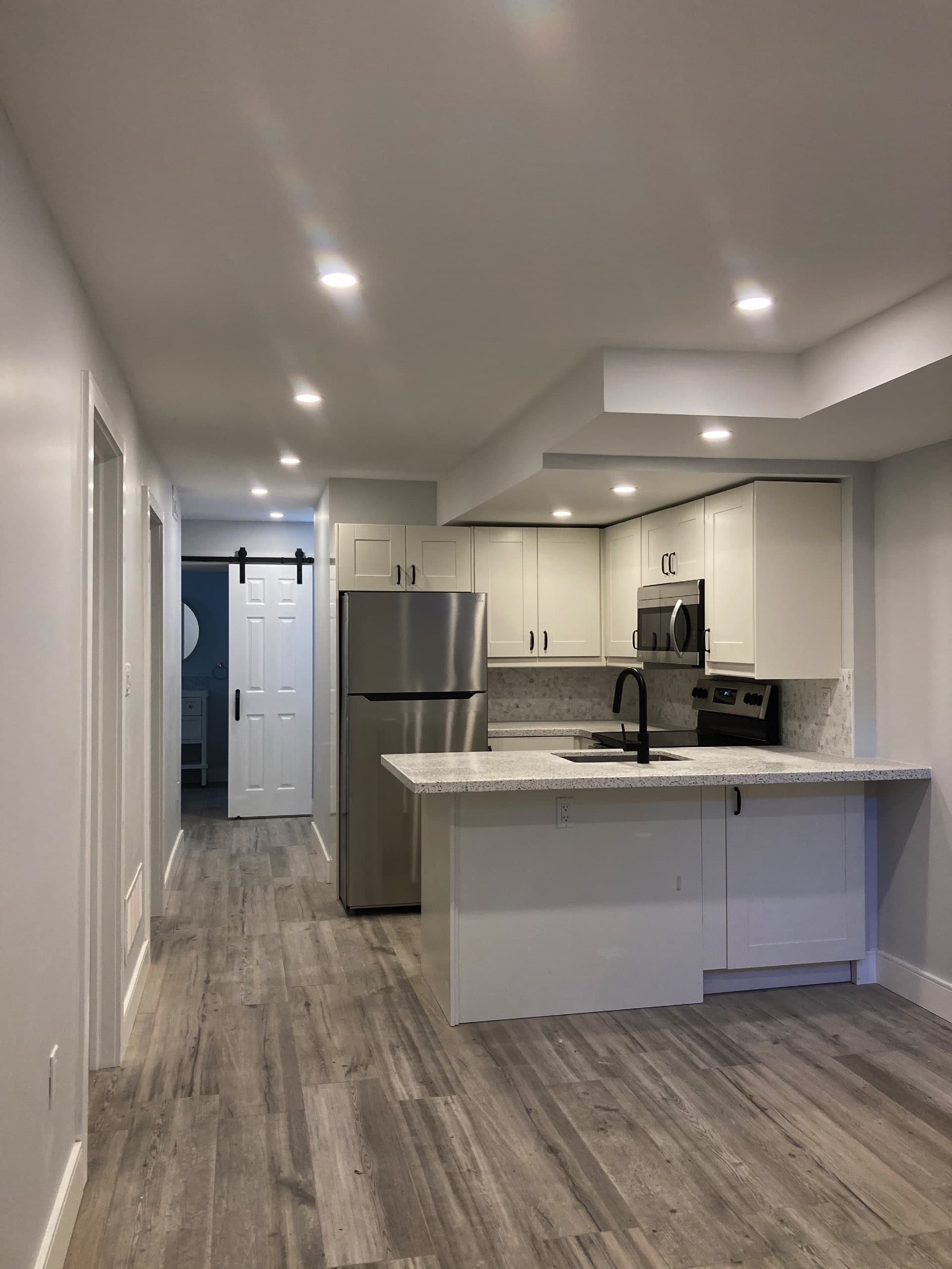 2 foot underpinning from 6′ – 8′ ceilings, brand new two-bedroom two-bathroom legal basement apartment.