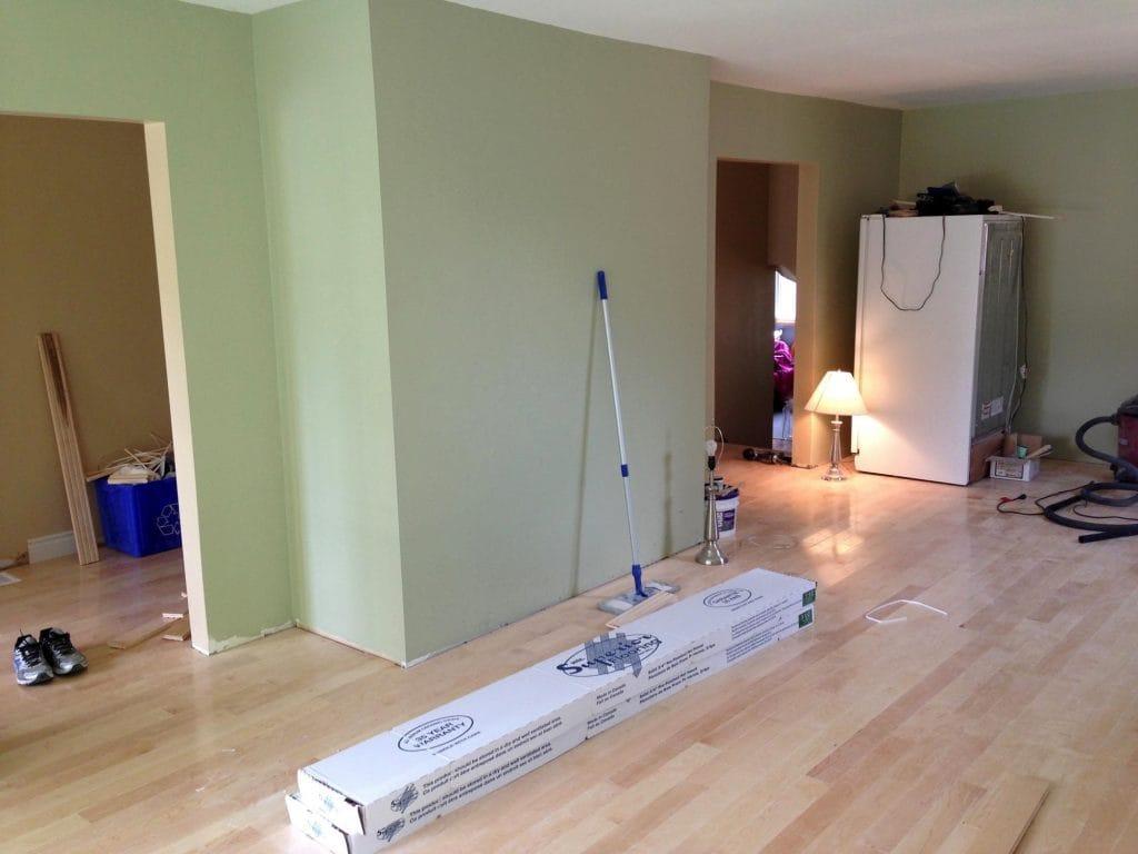 Living room paint and maple hardwood flooring