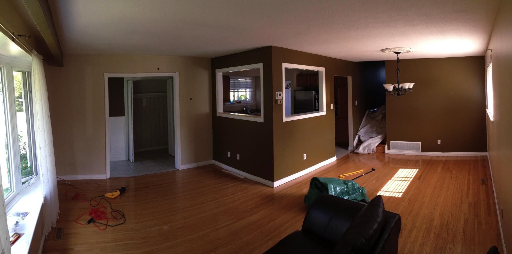 Main floor kitchen/ living room/ dining room open concept kitchen (before)