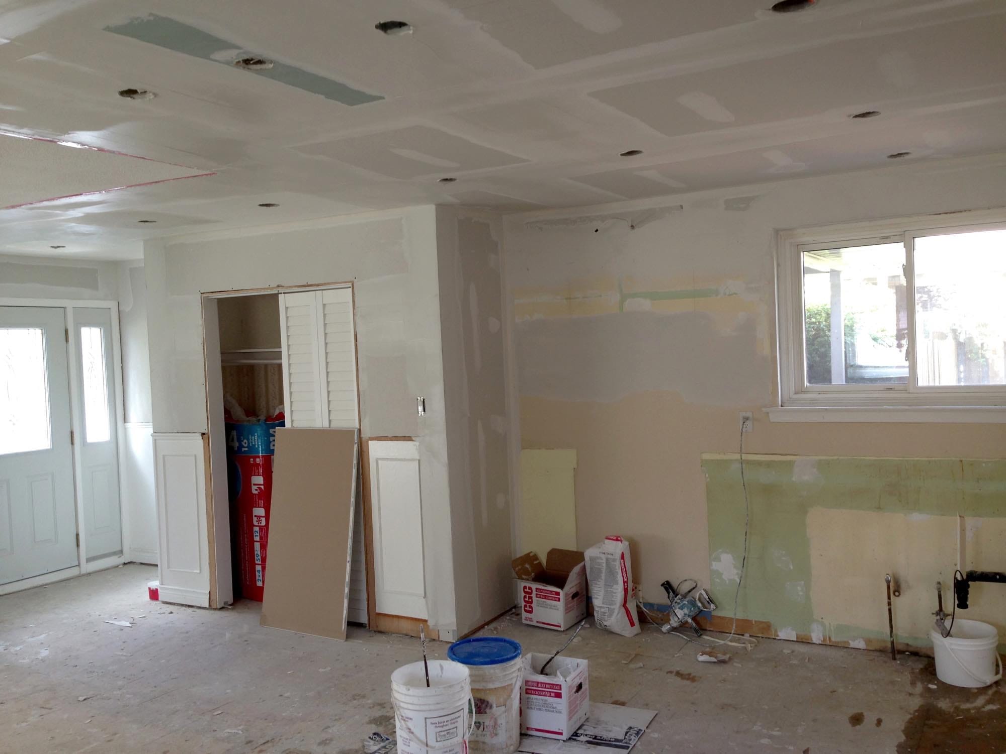 Main floor kitchen/ living room/ dining room open concept kitchen (drywall/taping and pot lights)